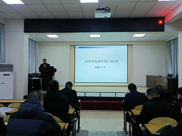 2022年1月3日下午,“国培计划(2021)”旬阳市赵湾中学教师信息技术能力提升工程2.0培训会在阶梯会议室举行,培训会由该校副校长周赟主持,教研处杜荣平老师主讲,全体教师参与。这次培训会是对2021年12月3日启动会的详细部署和整体推进。