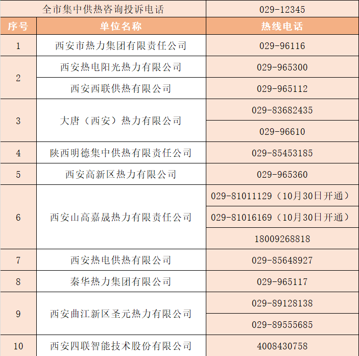 西安供暖季即将来临,供热管理部门、企业咨询投诉电话请查收