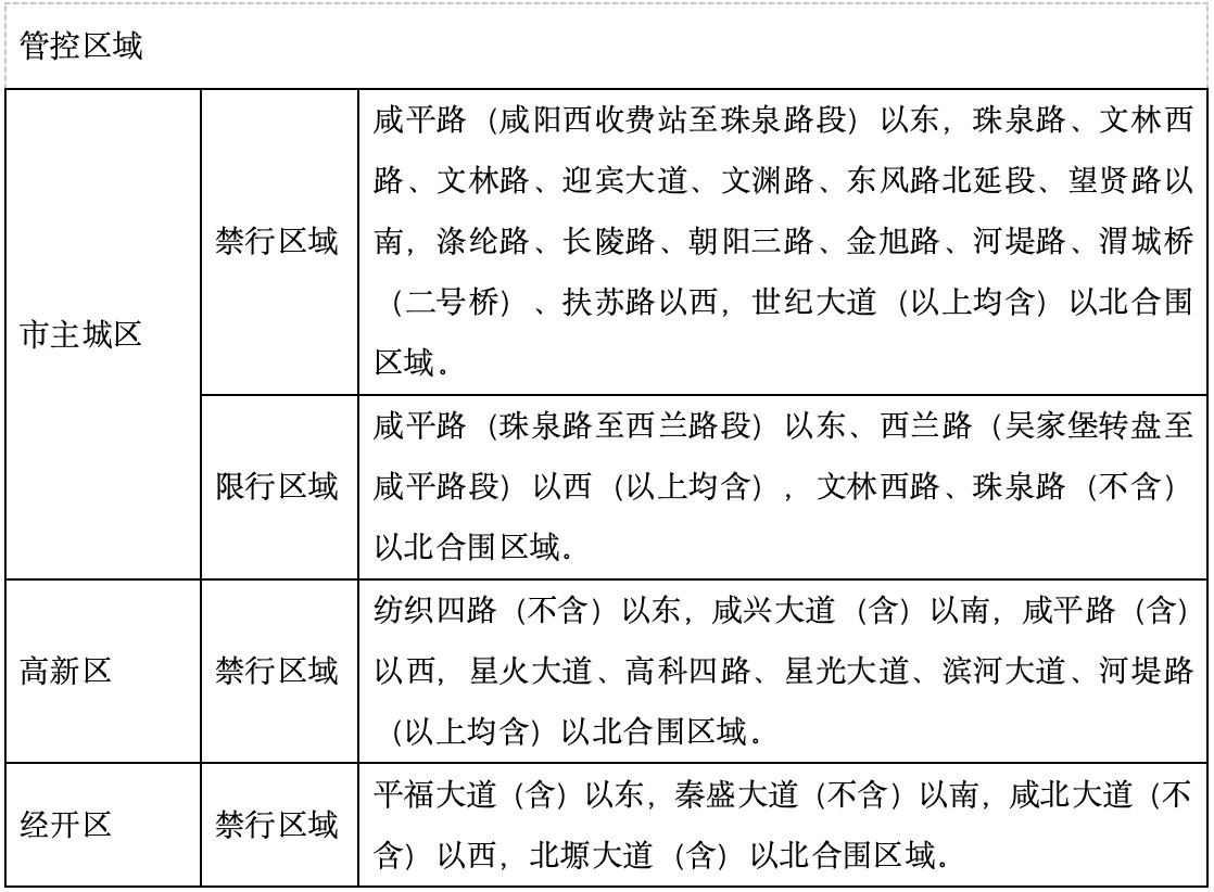 管控区域分为禁行区和限行区:禁行区全天禁止管控车辆通行;限行区每日20:00—08:30(次日)禁止管控车辆通行。