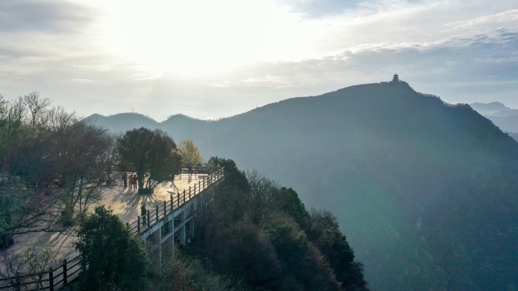 龙头山悬崖观景台以云海为背景,成为游客定格春日盛景的网红点位。