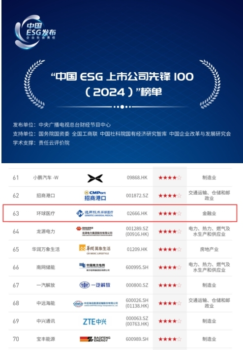 央视发布“中国ESG上市公司先锋100”榜单 通用技术环球医疗再度入选