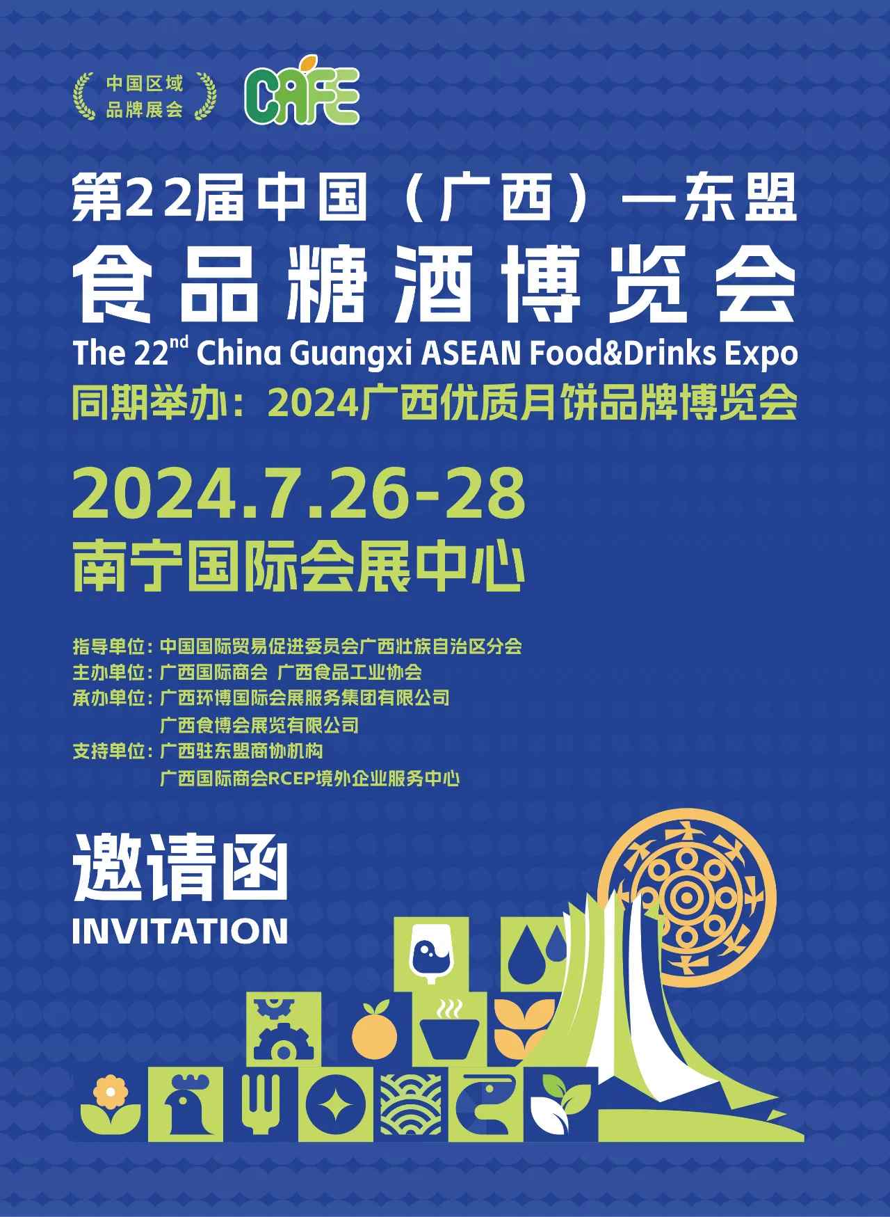 由中国国际贸易促进委员会广西壮族自治区分会指导,广西国际商会、广西食品工业协会主办,广西环博国际会展服务集团有限公司和广西食博会展览有限公司承办的第22届中国(广西)—东盟食品糖酒博览会以及2024年广西冷冻冷藏食品供应链合作交易会,将于今年7月26日至28日在南宁国际会展中心盛大举行。