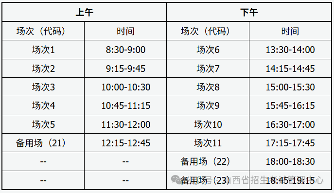 (CET-SET4)英语四级口语考试时间为11月22日,(CET-SET6)英语六级口语考试时间为11月23日,具体场次安排如下:
