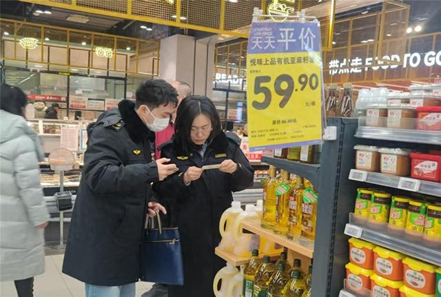 随后,执法人员前往家家悦超市,围绕冷链食品、酒类饮料等节日畅销商品,严格核查进货查验记录、商品包装标识、保质期及储存条件,确保商品来源可追溯、质量有保障。针对粮油肉蛋、蔬菜水果等生活必需品,详细了解市场供应及价格波动情况,并抽样检查计量器具的准确性,严防“缺斤短两”等损害消费者利益的行为。