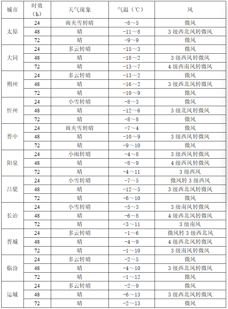 2月9日下午到夜间,全省阴天转多云,太原、晋中、长治等地的部分和大同、忻州、阳泉、吕梁、临汾、晋城等地的局部地区有雨夹雪或小雪。