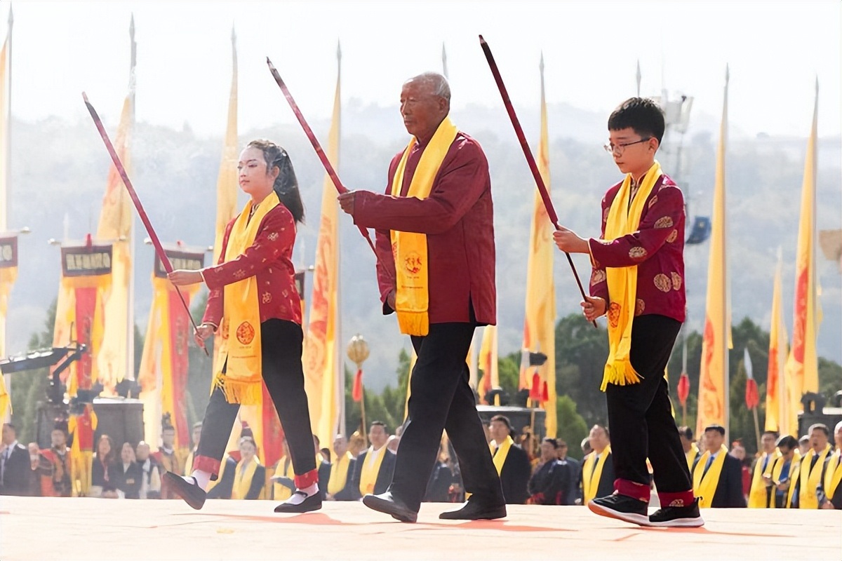 桥山巍峨,沮水流长。山门景行上,序礼执事宣诵祝文,来自社会各界的参祭代表,在仪仗队的引领下,至诚至虔,沿轩辕桥、龙尾道,至轩辕广场前。随后,各方代表前往指定区域列队肃立。