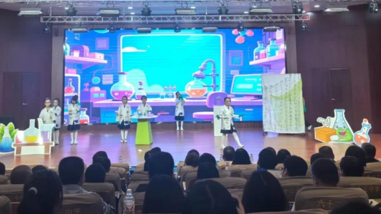 剧中,现代少年通过“时光实验室”与古代发明家展开跨越千年的对话,结合酸碱变色实验、干冰云雾特效等舞台手段,将抽象的科学原理转化为直观的艺术表达。学生们以童趣的语言解读化学奥秘,让科学探索的火花在时空交错中迸发。