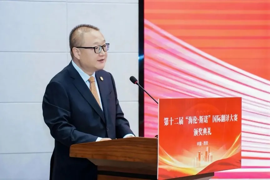 9月21日是“世界和平日”,也是美国著名记者、作家海伦·斯诺诞辰118周年纪念日。当天上午,第十二届“海伦·斯诺”国际翻译大赛颁奖典礼在西京学院工程舫报告厅举行。中国外文局翻译院副院长、中国翻译协会常务副秘书长邢玉堂在颁奖礼上讲话指出,今年是中国人民抗日战争暨世界反法西斯战争胜利80周年,在这一重要历史时间节点,举办此次大赛具有特殊而重要的意义。