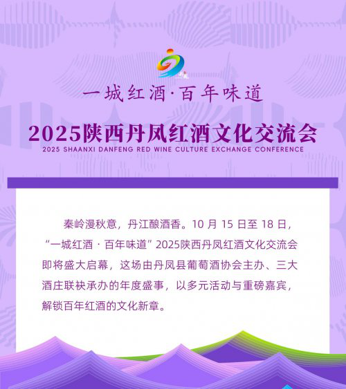 秦岭漫秋意,丹江酿酒香。10 月 15 日至 18 日,“一城红酒・百年味道”2025 陕西丹凤红酒文化交流会即将盛大启幕,这场由丹凤县葡萄酒协会主办、三大酒庄联袂承办的年度盛事,以多元活动与重磅嘉宾,解锁百年红酒的文化新篇章。