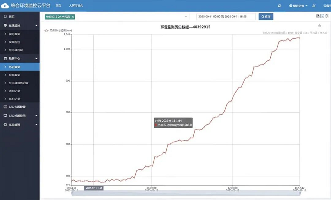 软件端高效联动:搭建综合环境监控云平台,支持电脑浏览器、手机APP双端访问,可随时查询实时数据与历史记录。平台具备数据可视化分析、风险态势自动研判、应急响应协同调度功能,真正实现“监测-分析-预警-联动”一体化运作,让防汛决策从“经验判断”转向“数据支撑”。