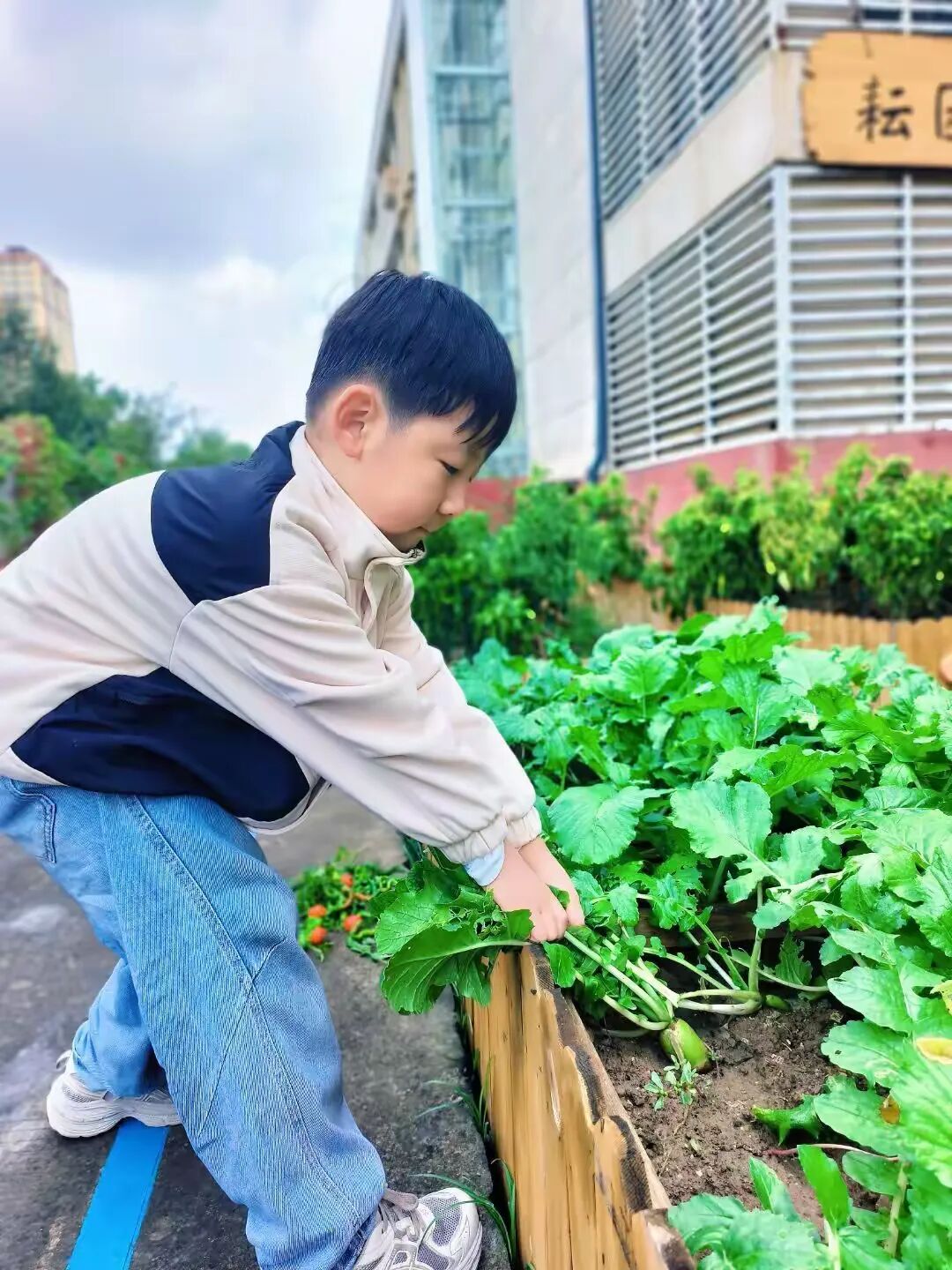 走进校园“耘园”,曾经绿意盎然的种植区如今已缀满累累硕果:红艳艳的辣椒如小灯笼般缀满枝头,翠生生的菜苗舒展着叶片,圆滚滚的萝卜顶开泥土探出半截身子,饱满的花生果实静待采撷。