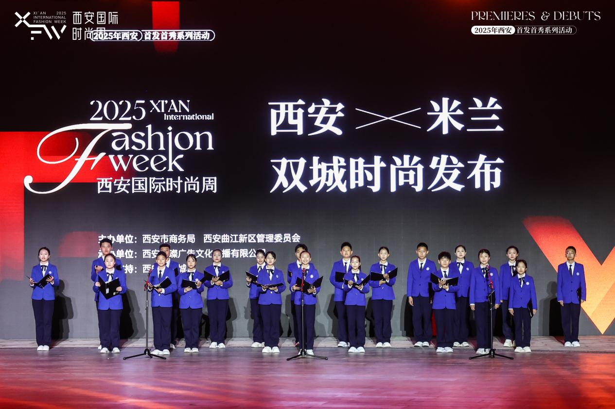 为响应西安“唐诗之都”建设,活动现场特邀曲江第二学校的少年唐诗朗诵团登台演出,将唐诗文化与时尚舞台融合,展现文商旅融合的创新场景,为千年诗意赋予时尚新生。
