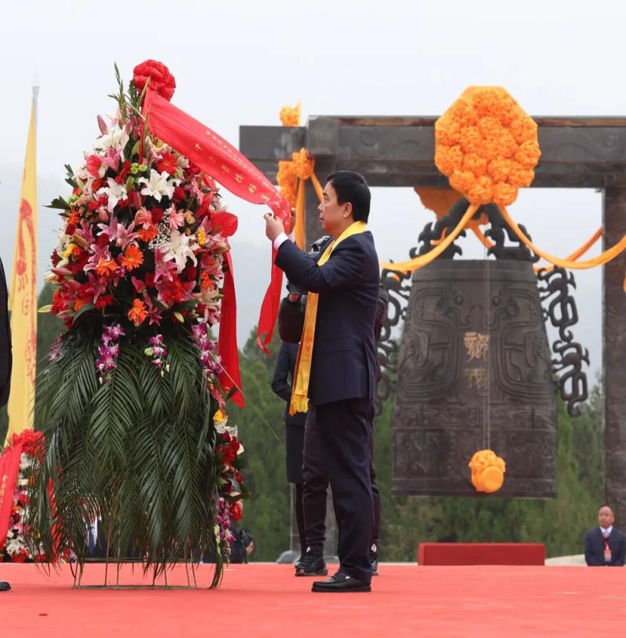 中共陕西省委黄帝陵文化园区工作委员会书记、陕西省黄帝陵文化园区管理委员会主任、陕西省公祭黄帝陵工作委员会办公室主任、黄陵县委书记刘矿平,代表守陵儿女敬献花篮。