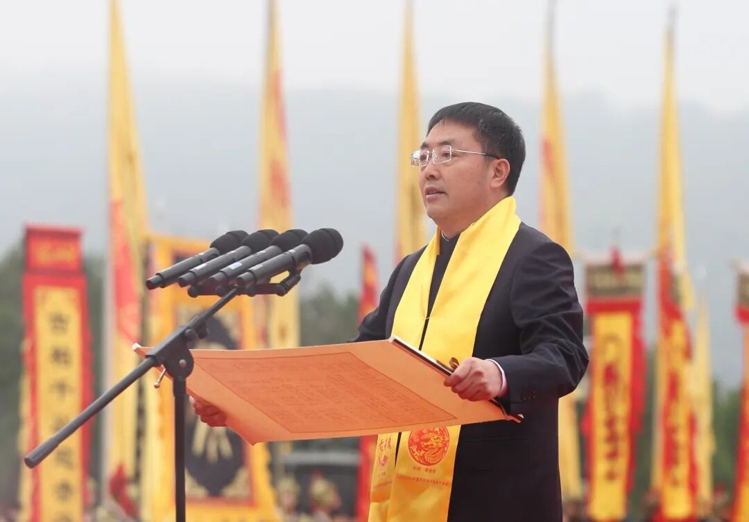 中共陕西省委黄帝陵文化园区工作委员会副书记、陕西省黄帝陵文化园区管理委员会副主任、黄陵县委副书记、黄陵县人民政府县长李建雄恭读祭文。全体参祭人员向轩辕黄帝像行三鞠躬礼,表达对先祖的追思与敬仰。盛大的乐舞告祭刚柔相济、亦古亦今。
