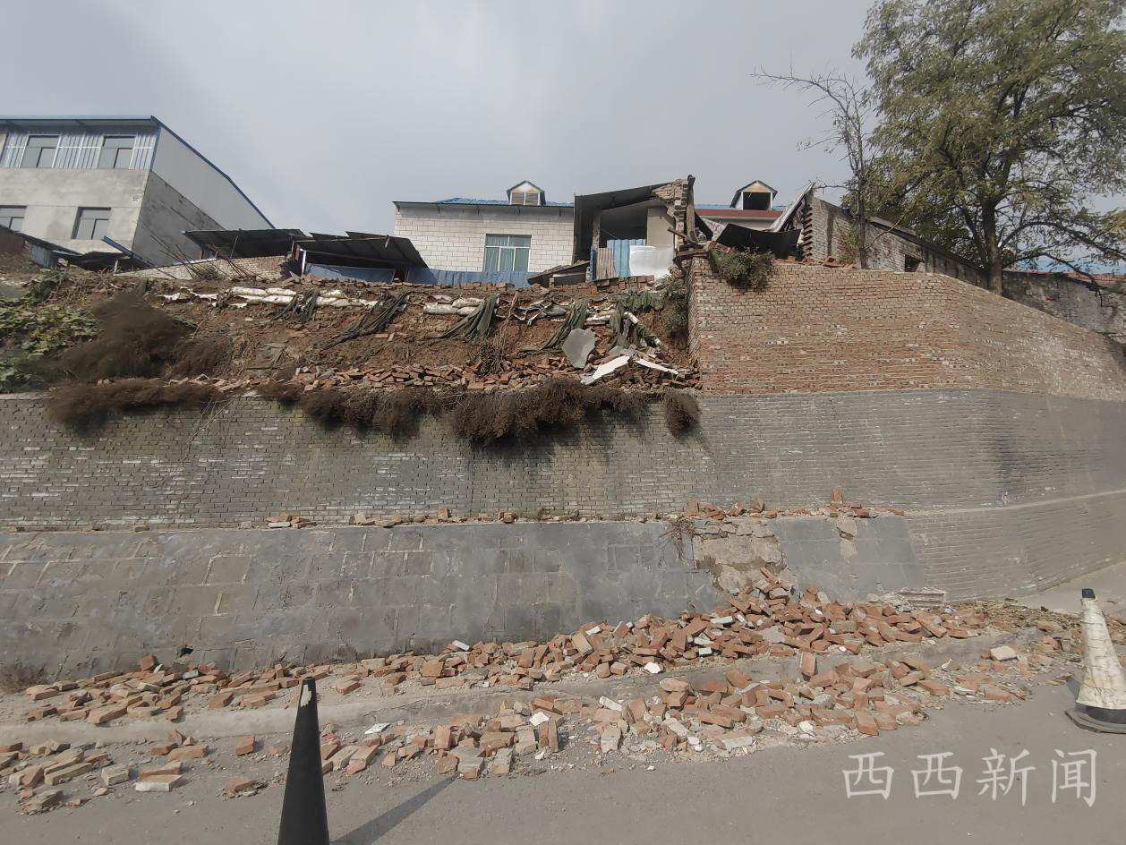 近日,铜川市耀州区210国道泥阳村村口一段长约十余米的护坡因连续阴雨出现土方滑塌,塌方土石占据近三分之一路面,对过往车辆与行人安全构成威胁。事发半个多月以来,相关部门尚未开展修复工作,现场仅设置锥形桶及写有“禁止靠近 围墙危险”的警示标识。