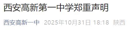 近日,西安高新第一中学发布声明,称近期网络“天降名校!高新一中教育集团托管沣东新城科创第一小学”“高新一中沣东新校区(高新一中沣东中学初中科创校区)强势入驻”等宣传内容均属虚假信息,与事实完全不符。