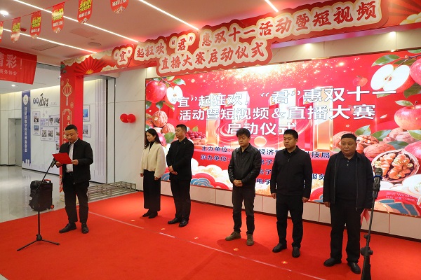 11月5日,铜川市宜君县“宜”起狂欢,“君”惠“双十一”活动暨短视频&直播大赛启动仪式在宜君县数字创业中心举行。本次活动由宜君县经济贸易和科技局主办,县电子商务协会、县电子商务公共服务中心、尧生镇电子商务协会共同承办,旨在紧抓“双十一”消费热点,展示县域数字经济与实体经济融合成果,推介“宜君苹果”“宜君核桃”等地理标志产品及文旅资源,激发全民参与热情,培育本土电商人才,为县域经济发展注入强劲动能。县农业农村局、县供销合作社联合社分管领导,宜君县电商企业代表、直播达人、电商从业者50余人参加活动。宜君县经济贸易和科技局主要领导、阿里巴巴乡村振兴驻宜君特派员彭发杰出席活动。