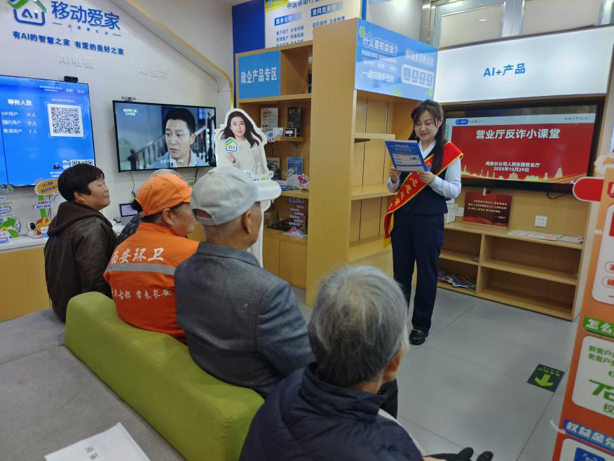 “大家在双十一期间收到‘订单异常’‘商品质量问题’的退款短信可千万别点链接,这是诈骗套路!”走进西安移动人民东路营业厅,营业厅经理沈泓妤利用客户等候办理业务的碎片化时间开展“反诈小课堂”。她用通俗易懂的语言讲解冒充客服退款、虚假物流赔付等诈骗套路,并传授“三不一多”反诈口诀:“未知链接不点击、陌生来电不轻信、个人信息不透露、转账汇款多核实”。生动鲜活的案例分享与面对面的互动答疑,让反诈知识深入人心,帮助客户在潜移默化中提升防范意识。