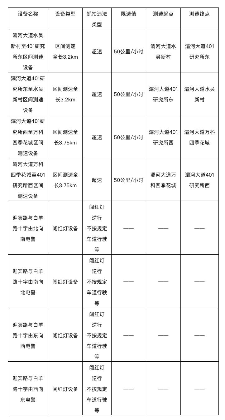 据悉,依据道路管理部门提供的道路设计时速值、道路限速值等参数,蓝田县公安局交通管理大队拟启用8处固定式交通技术监控设备。此次启用的设备主要抓拍超速、闯红灯、逆行、不按规定车道行驶等违法行为,广大驾驶人途经时请注意。
