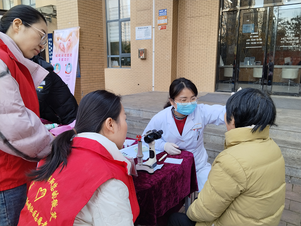 活动现场暖意融融,义诊台前人潮涌动却井然有序。医护团队针对社区居民常见健康需求,提供免费血压测量、血糖检测等基础服务,面对居民的咨询,医务人员们细致解答高血压、糖尿病等慢性病的用药规范与饮食调理方案。产科首席专家王晋教授亲自为孕产妇提供孕期保健指导。眼科、耳鼻喉科及口腔科医师则逐一排查视力问题、咽喉不适、口腔疾病等常见困扰,量身定制康复训练建议。