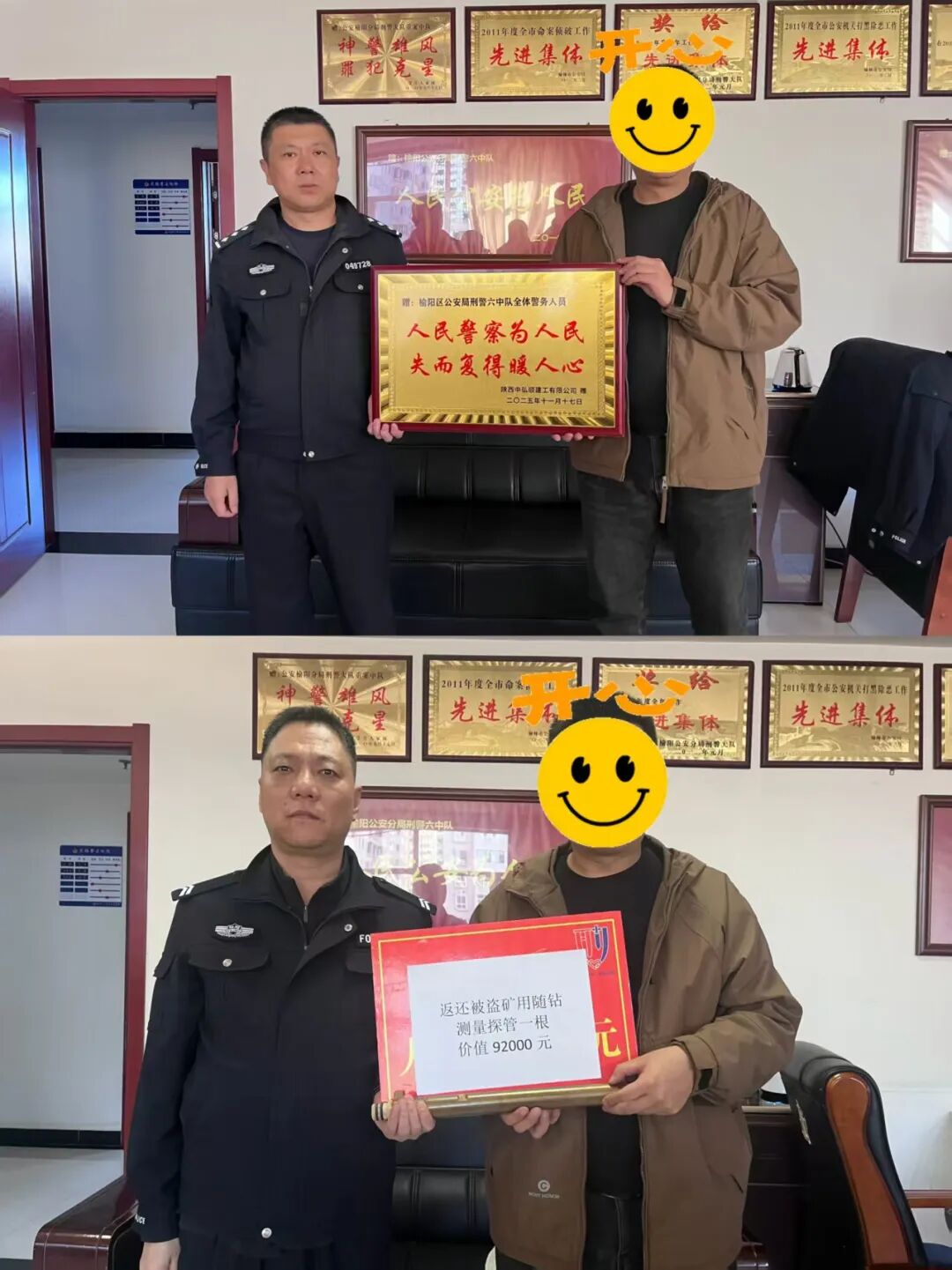 11月13日,刑事侦查大队接到某单位报警,称一根价值9.2万元的矿用随钻测量探管被盗。民警调查发现,该单位待离职人员陈某因工资结算问题与单位产生纠纷,遂实施盗窃。被抓后,陈某如实供述了自己的犯罪事实,被盗探管已顺利追回并返还单位。