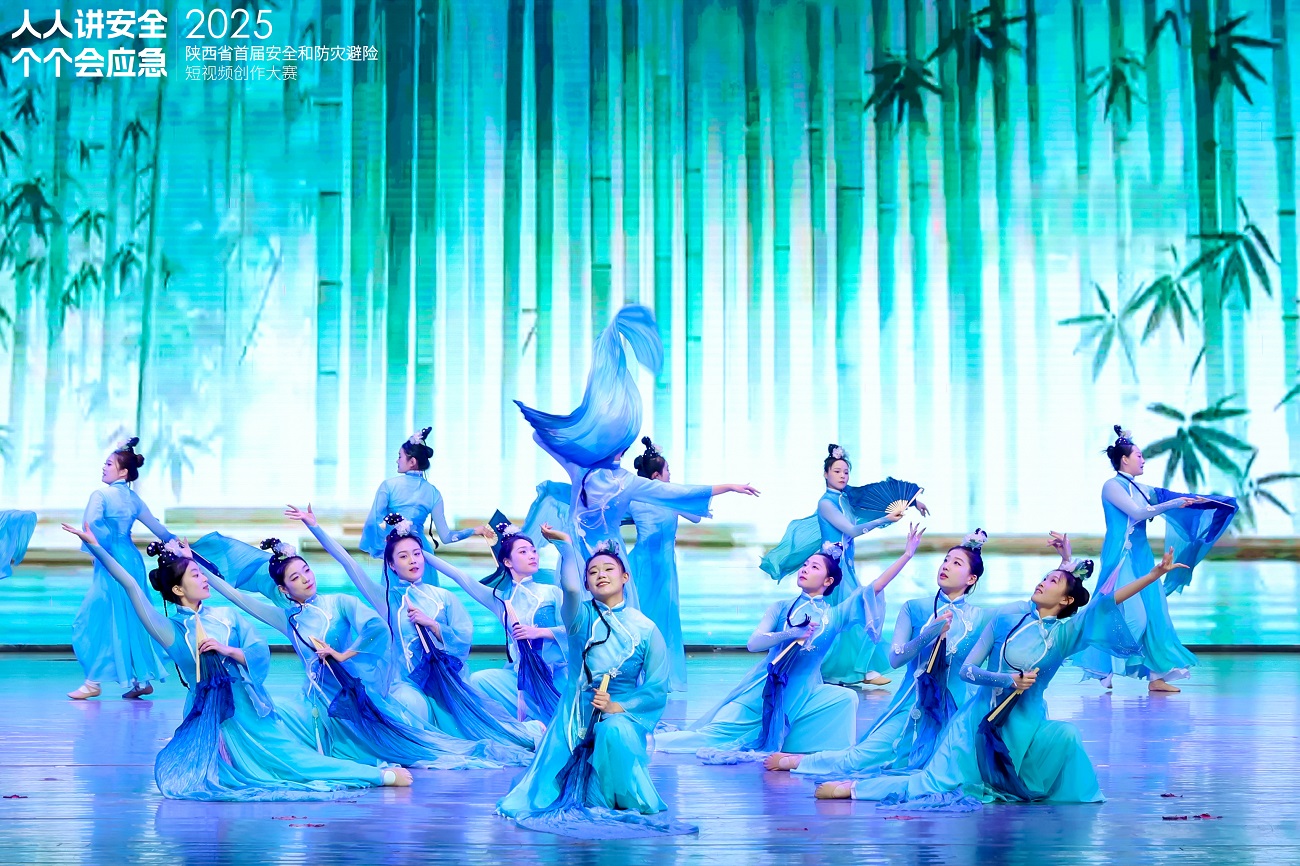 光影定格安全瞬间,镜头传递避险智慧。在优秀作品混剪展映后,颁奖环节有序进行。本次大赛共评选出优秀奖30部、三等奖10部、二等奖6部、一等奖3部,以及团体奖2项、单项奖12项。与会领导嘉宾分别为获奖代表颁奖,期间该校舞蹈专业学生穿插表演的《敬畏·泾渭》《绿水映华》《同一个梦想》等节目为典礼增添亮点。