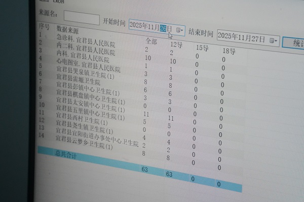 “以往基层患者做心电检查,要么奔波县城耗时耗力,要么因基层缺乏专业诊断人才导致结果不准。”县人民医院心电超声医学科主任郭杉介绍,“心电一张网”打破了县乡医疗资源壁垒,基层患者在乡镇卫生院完成检查后,心电图数据会实时传输至县医院系统,科室医师快速出具精准诊断结论,涵盖心梗、冠心病、心律失常、心肌炎等多种常见心血管疾病。