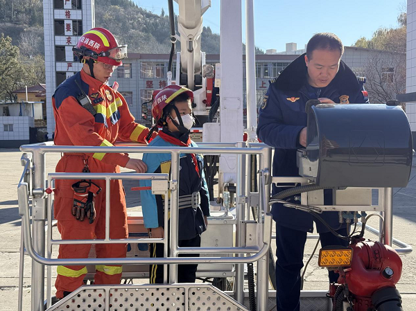 学生体验消防登高平台车