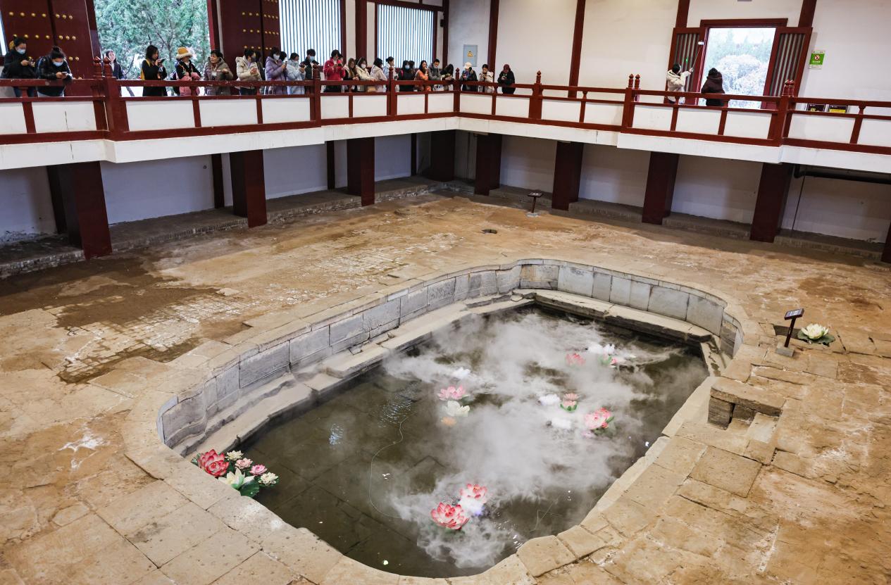 坐落于西安城东30公里处、毗邻兵马俑的华清宫,是国家首批5A级旅游景区、全国重点文物保护单位。当天下午,采访团进入景区后参观了唐华清宫御汤遗址博物馆等内容,感受这里深厚的历史底蕴。据景区讲解员介绍,今年景区以“盛唐国潮”为核心主题,融合唐代礼乐、诗词歌赋等文化元素,通过演艺创新、互动升级、IP赋能等一系列创新举措,实现每日60余场特色演出,以“沉浸式+”这一文旅融合新路径,营造全天候的“盛唐”氛围,构建“可感知、可参与、可传承”的全方位唐文化体验,景区工作人员更是全员汉服妆造,让游客一秒入戏、梦回大唐。