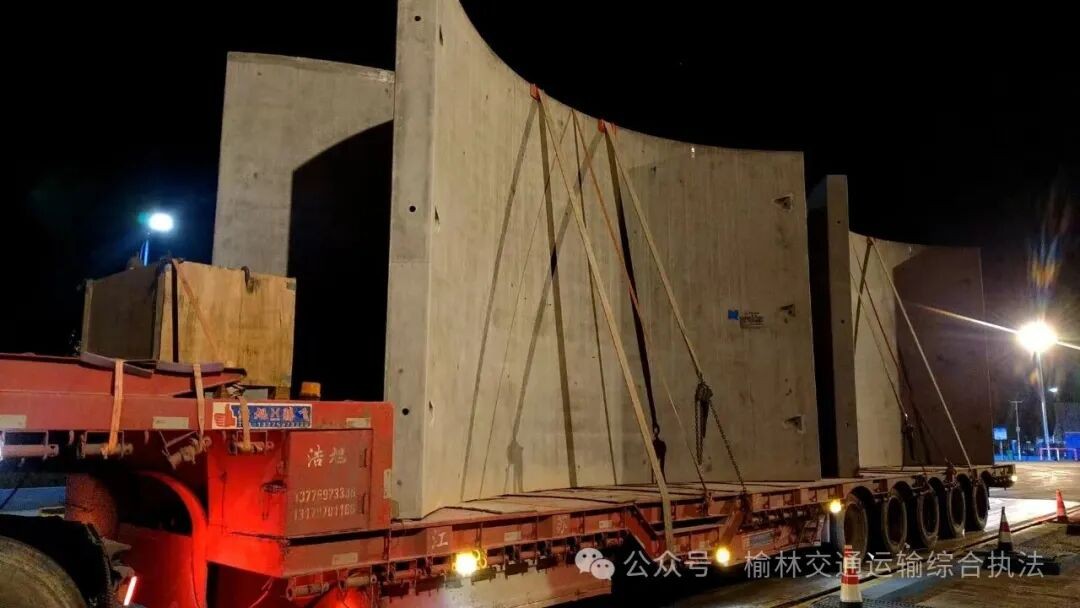 依据《超限运输车辆行驶公路管理规定》第四十七条第一项、第四十三条,以及《陕西省交通运输行政处罚裁量权基准》相关规定,经法制审核和集体讨论,榆林市交通运输综合执法支队对当事人作出罚款16500元的行政处罚。目前,该车搭载的四件混凝土风电立柱已分载到两辆车上,两辆车皆已取得超限运输车辆通行证。