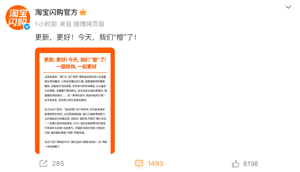 从“蓝”到“橙”更新是为了更好,也激励淘宝闪购常新。淘宝闪购表示,未来,会继续守护好每个即时送达的需求,更将继续带来更丰富的商品选择、更惊喜的优惠权益。不断让每一位新老朋友,都体验到更多更新更好的服务。(记者 苏珊)