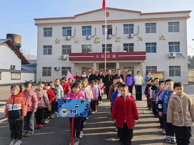 与此同时,试马法庭迎来了一群特殊的"小客人"——试马镇中心幼儿园的50余名师生。干警们用童趣盎然的语言,向孩子们讲述"獬豸"断案的故事,介绍法徽、法槌的含义。孩子们小心翼翼地触摸法槌、坐上审判席,眼中充满了对法律的好奇与敬畏。"这种实地体验比课堂讲解更生动,能让法治的种子在孩子们心中早早扎根。"随行老师如是评价。