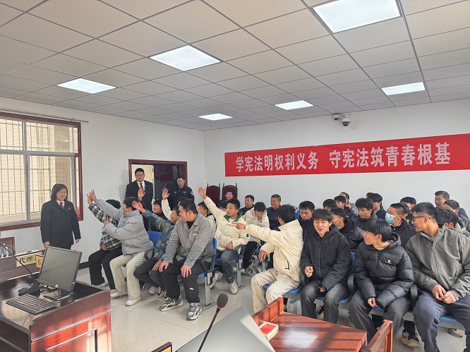 在富水人民法庭,一场别开生面的"宪法宣传暨法庭开放日"活动正在进行。商南县高级职业中学的30余名学生走进法庭,开启了一场跳出课本的法治实践课。庭长带领学生们依次参观调解室、审判庭,当走到审判席前,法官特意停下脚步,结合宪法第131条"人民法院依照法律规定独立行使审判权"的规定,详细讲解了审判席、诉辩席的功能分工,以及国徽、法槌的象征意义。