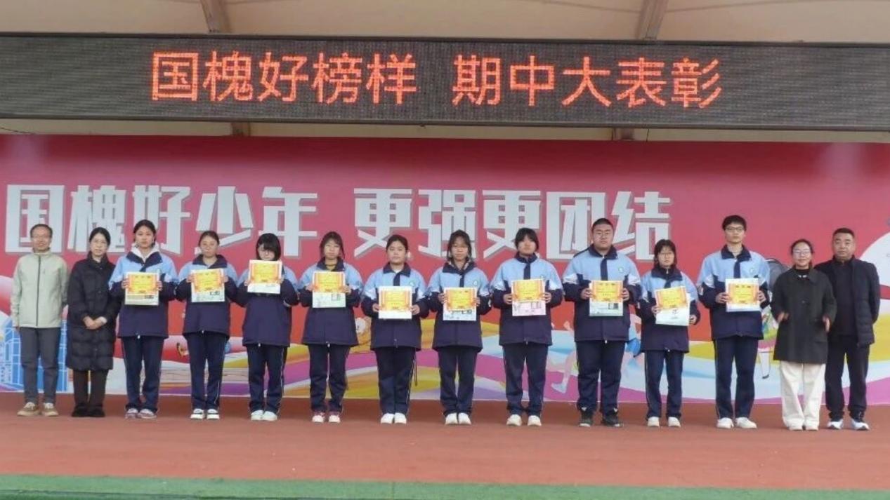 随后,党支部副书记陈西富宣读学生获奖名单。本次表彰设立“国槐标兵”“国槐榜样”“国槐黑马”“国槐领袖”四大荣誉称号,覆盖全学段优秀学子。李欣蕾、岳思琪、胡睿之等获得“国槐标兵”;七年级姜梓怡、八年级刘檬、高一年级马宇浩等获“国槐榜样”;七年级杨皓泽、八年级王俊刚等进步显著的学生获得了“国槐黑马”;“国槐领袖”则由七年级彭镕溥、八年级刘檬、高一年级胡一澄同学获得。