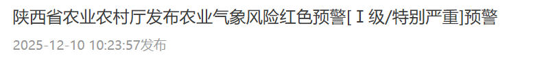 12月10日,陕西省气象局与农业农村厅紧急拉响设施农业“雪灾低温双重警报”:11日至13日,全省将遭遇大范围雨雪、强降温及大风天气,部分温室大棚面临垮塌、蔬菜受冻的严峻威胁。