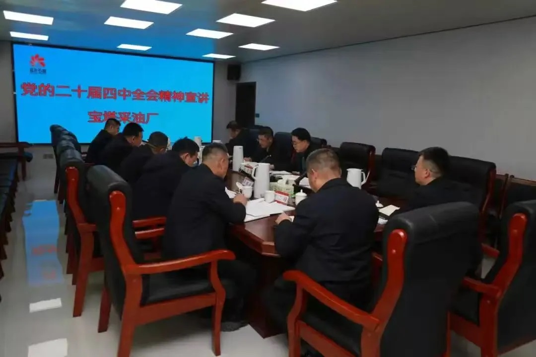 贺小平指出,党的二十届四中全会是在即将进入基本实现社会主义现代化夯实基础、全面发力的关键时期召开的一次十分重要的会议,会议部署的各项任务为企业发展提供了根本遵循和行动指南。要把学习贯彻党的二十届四中全会精神作为当前和今后一个时期的重要政治任务,用好党委会“第一议题”、党委理论学习中心组学习、党支部“三会一课”等学习机制,对全会精神进行再学习再讨论再体会,做到系统把握、融会贯通,更加自觉用党的科学理论指导实践、推动工作。要把贯彻全会精神同做好本职工作结合起来,紧盯产量目标,强化调度指挥,全力提升产能,确保采油厂全年稳增长目标顺利完成。
