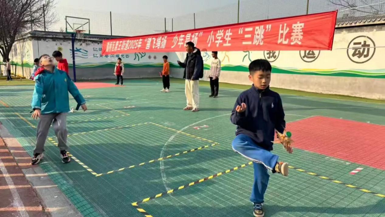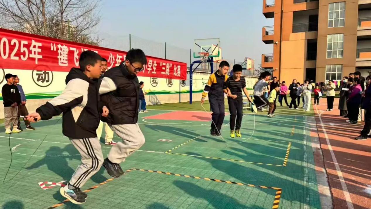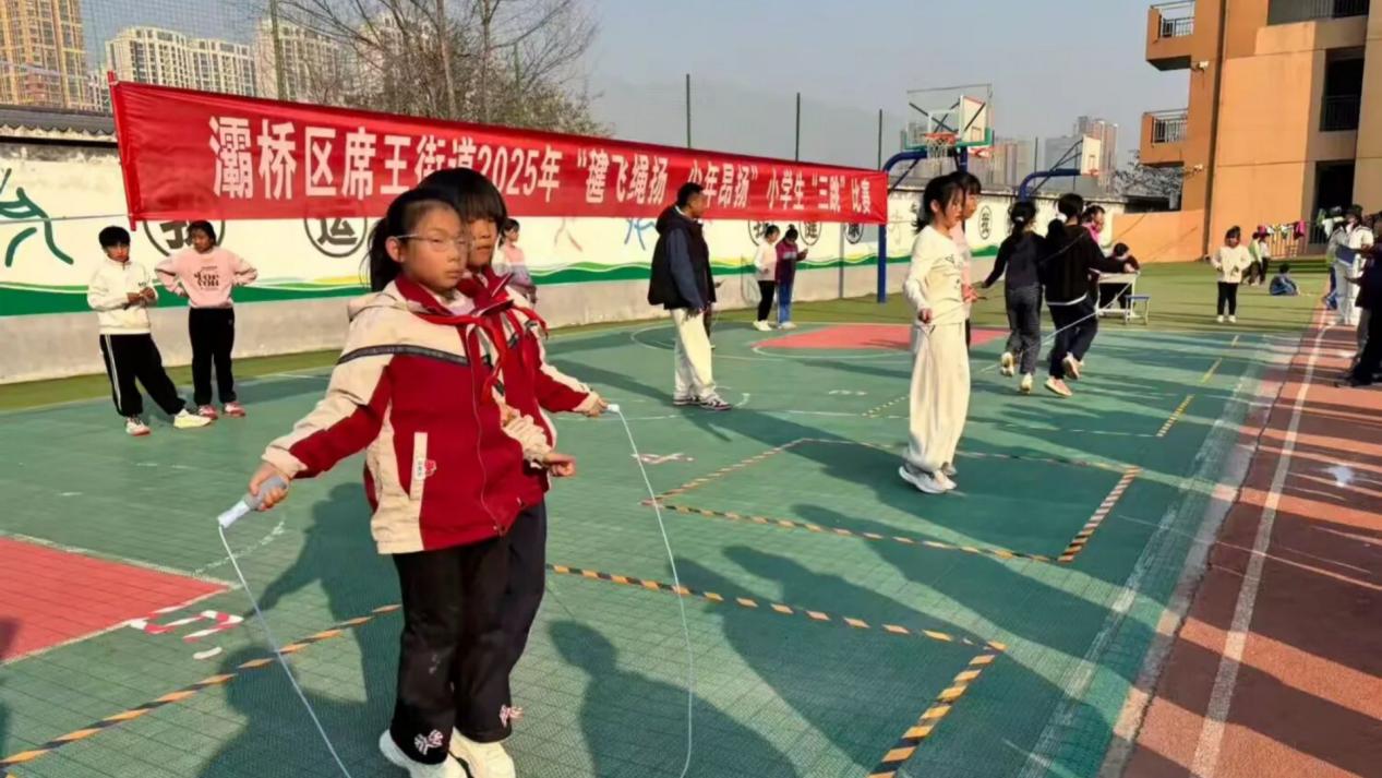 为深入贯彻“双减”政策,丰富校园体育文化生活,增强学生体质,培养学生的团队协作精神与拼搏意志,近日,西安市灞桥区席王街道中心小学教育集团在席王中心小学举办了主题为“毽飞绳扬 少年昂扬”的小学生“三跳”比赛。本次赛事吸引了众多师生的热情参与,运动场上彩绳翻飞、毽子起舞,处处洋溢着青春的活力与运动的欢乐。