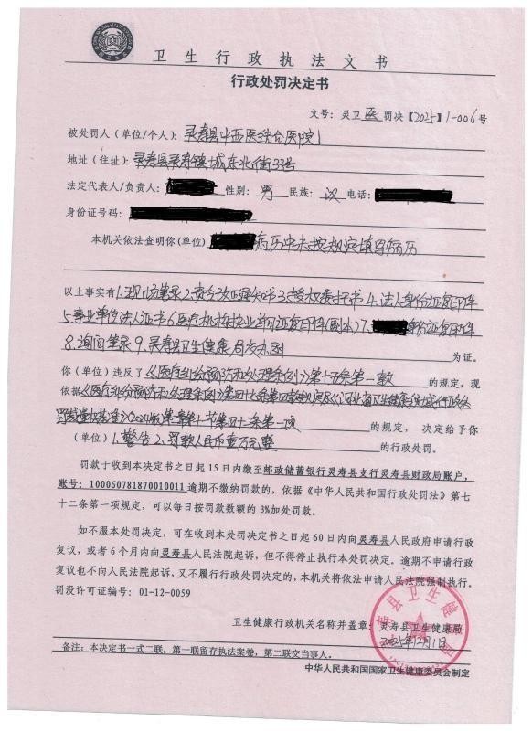 原标题:未按规定填写病历、超标准收费,灵寿县一公立医院多次被处罚