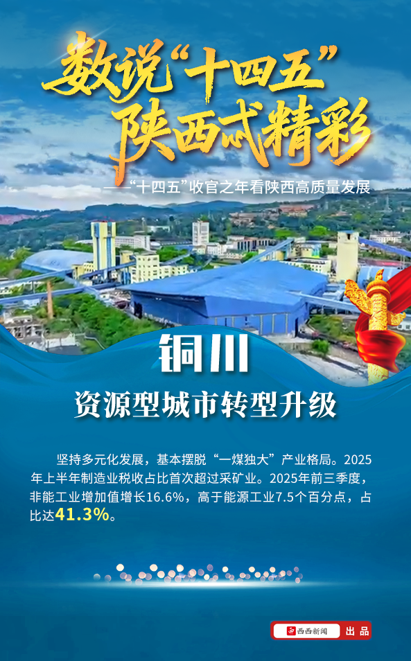 近日,在陕西省“高质量完成‘十四五’规划”系列新闻发布会上,铜川市政府答记者问,介绍了铜川“十四五”期间推动产业转型、构建现代化产业体系方面取得的成效。此前,铜川市政府网站刊发铜川市“十四五”规划实施成就发展纪实,介绍该市“十四五”期间经济社会发展情况。
