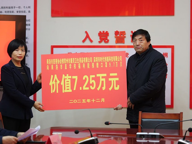 活动现场,商洛市慈善协会携手常州市康灵卫生用品有限公司、深圳市时代创越科技有限公司,向商洛市直六所学校包括福利院捐赠口罩9.7万只,物资总价值达7.25万元。这批爱心物资将为师生们的日常学习生活筑牢健康防线,提前送上元旦佳节的诚挚祝福。