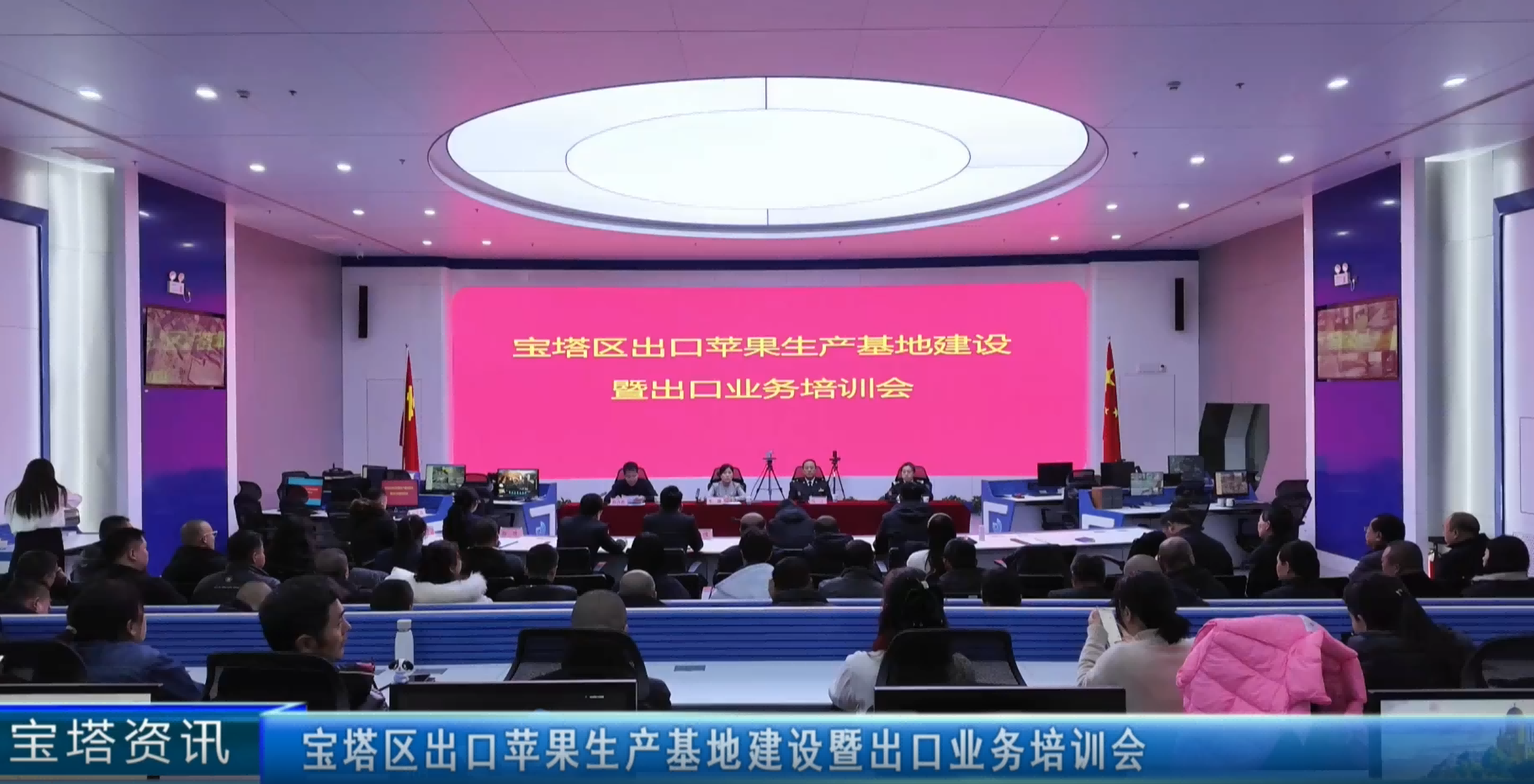 立足“延安苹果”核心产区资源优势,破解出口贸易瓶颈,助力优质苹果飘香海外!12月18日,宝塔区出口苹果生产基地建设暨出口业务培训会召开。延安海关关长马丁、区政府副区长李娜出席会议,延安海关、区属各相关部门负责人及果业技术骨干、企业合作社代表参加培训会。
