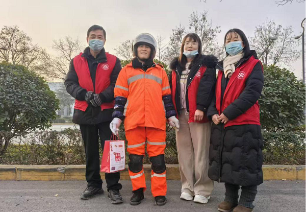 12月19日清晨,秦御佳苑社区“渭北新城志愿者服务队”发起了“冬日暖阳”慰问行动。志愿者们带着热气腾腾的早餐、保暖手套和护手霜,沿秦王一路主干道,为在寒风中坚守岗位的环卫工人送去温暖。一份份早餐递到手中,一句句叮咛留心防寒,接过慰问品的环卫工人脸上绽放出笑容。此次活动累计慰问20余人,以微小而具体的行动,表达了对“城市美容师”辛勤付出的感谢与敬意,让文明友爱的暖流驱散了冬日的凛冽寒意。