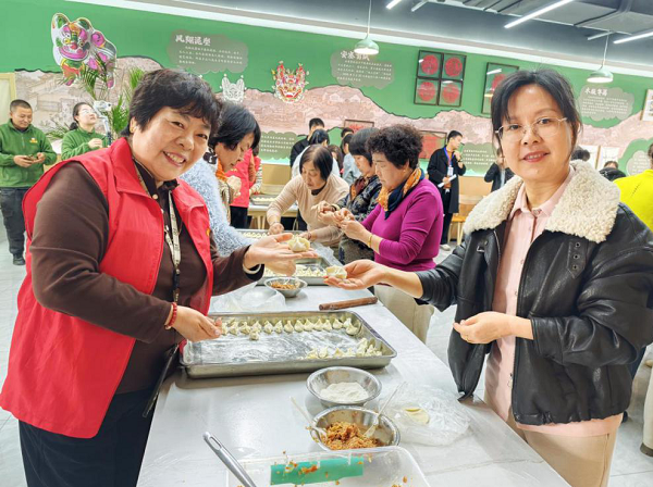 当天,温暖也在阳光馨园社区嵌入式服务中心洋溢。在社区党支部组织下,“情暖冬至 ‘嵌’入幸福”主题活动热闹开展。居民们齐聚一堂,和面、擀皮、调馅、包饺子,在协作中重温传统节日的氛围,欢声笑语仿佛一曲温馨的“邻里协奏”。此次活动也成为社区展示和深化“嵌入式服务”的窗口。该模式旨在打破公共服务与居民生活之间的“隔阂”,让精细化、便捷化的服务像“毛细血管”一样渗透至社区末梢。活动还特别安排了“上门关怀”环节,将共享的团圆温暖转化为对困难群众的定向帮扶,使互助精神在邻里之间生根发芽。