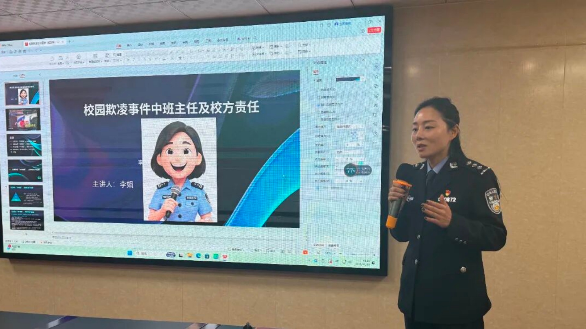 在“法律身份·责任明晰”模块中,李警官引导学生认识作为公民和未成年人所享有的权利与应尽的义务,强化责任意识;随后的“向欺凌宣战·守护尊严”环节,通过剖析校园欺凌的常见形式、隐蔽特征及其法律后果,明确传递“欺凌无小事”的理念,筑牢思想防线。
