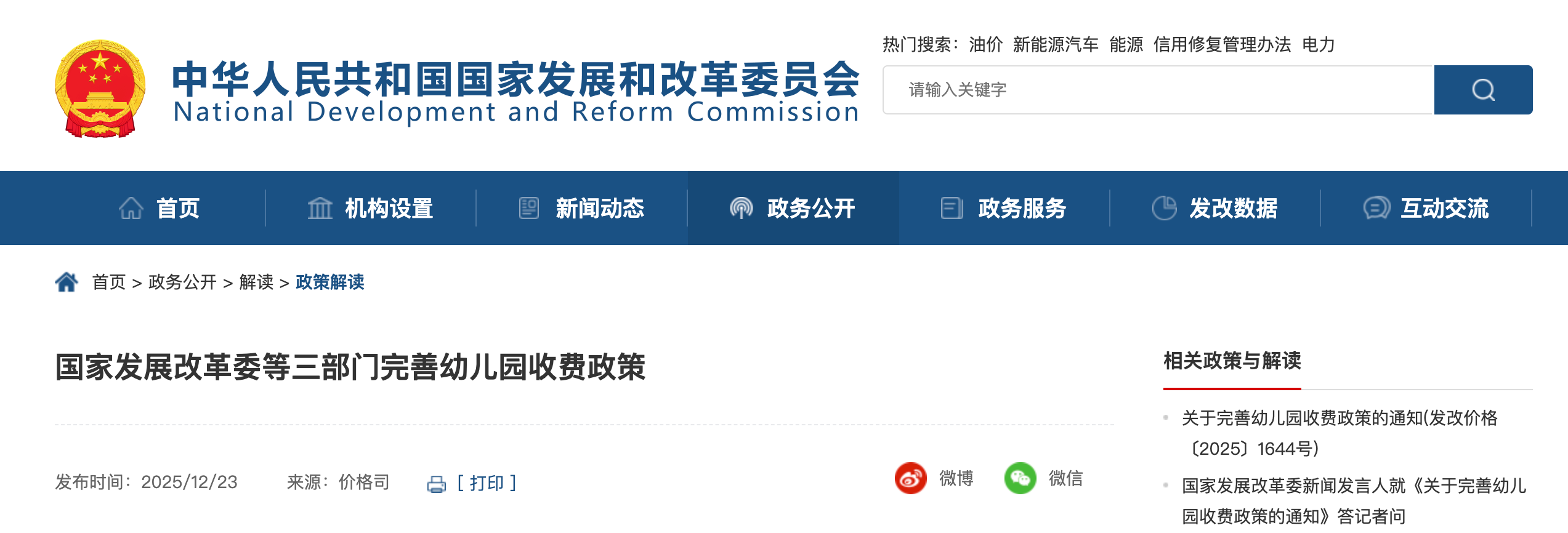 为更好促进学前教育普及普惠安全优质发展,有效降低人民群众保育教育成本,推动完善生育支持政策体系,国家发展改革委、教育部、财政部于近日联合印发《关于完善幼儿园收费政策的通知》。