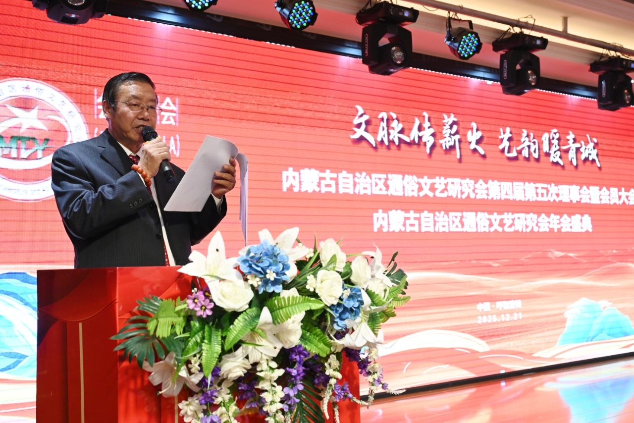 2025年12月21日这一天正值农历冬至,朔风携雪映青城,群贤毕至话文艺。值此辞旧迎新之际,内蒙古自治区通俗文艺研究会第四届五次理事会暨会员代表大会隆重召开。来自全区各地的文艺界同仁齐聚一堂,共商通俗文艺发展大计,共绘文化繁荣新蓝图。
