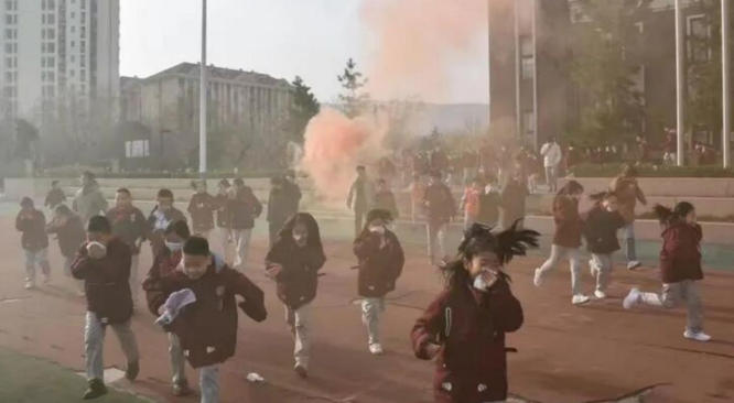 急促的消防警报骤然响起,演练正式开始。全体师生迅速响应,按照预案要求,以湿毛巾捂口鼻、弯腰低姿沿指定路线有序撤离。教师在楼梯转角、楼道出口等关键位置全程引导,确保通道畅通;学生队伍整齐、安静、高效,展现出良好的应急素养。数分钟内,全校师生安全抵达操场指定区域,各班迅速整队、清点人数并上报指挥部,实现“全员安全、无一遗漏”的演练目标。