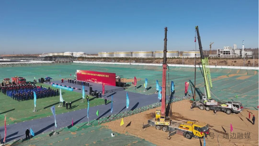 12月25日,榆林能源化工有限公司15万吨/年釜式法EVA装置项目开工仪式在靖边经开区举行。航拍镜头下,红色主背景板醒目展示项目名称,“建设国内一流世界知名现代能源化工企业”的蓝色横幅格外亮眼,身着统一工装的干部职工列队整齐、精神抖擞,彩屑与彩旗点缀现场,为这场省、市、县三级重点产业升级工程的开工仪式增添了热烈氛围。