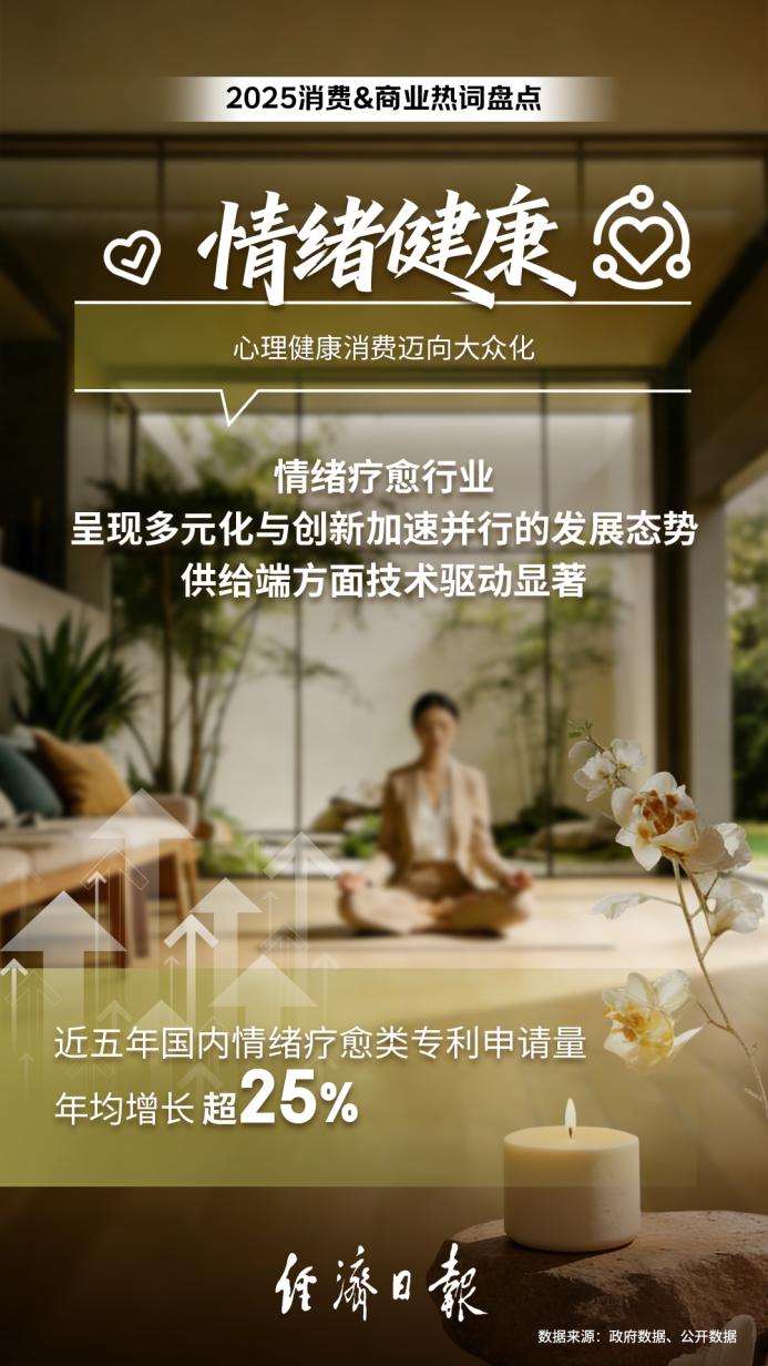 当前情绪疗愈行业呈现多元化与创新加速并行的发展态势,供给端方面技术驱动显著,近五年国内情绪疗愈类专利申请量年均增长超25%。与此同时,消费端的热情也迅速升温,京东上“情绪”相关关键词搜索量同比激增超100倍,反映出公众主动寻求解决方案的强烈意愿。情绪鱼油、解压玩具、情绪疗法书籍等成为热销品类。这表明,消费者正从被动承受转向主动干预,情绪健康管理日益融入日常消费决策。