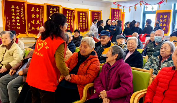 演出间隙,志愿者们主动坐至老人身边,与他们亲切交谈,细致询问身体状况与日常生活情况。一句句体贴的问候、一声声温暖的叮嘱,让老人们倍感暖心。养老院里欢声笑语不断,洋溢着浓厚的节日氛围。